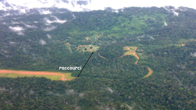 A l'arrivée à l'aérogare de Saül, un raccourci ombragé vous permet de gagner le village à pied en une vingtaine de minutes, vous épargnant les deux kms de piste carrossable souvent caniculaires. C'est une ballade agréable,une première plongée en forêt.Une petite navette assure aussi depuis peu le transfert passagers aérodrôme/village/aérodrôme (5€/pers).