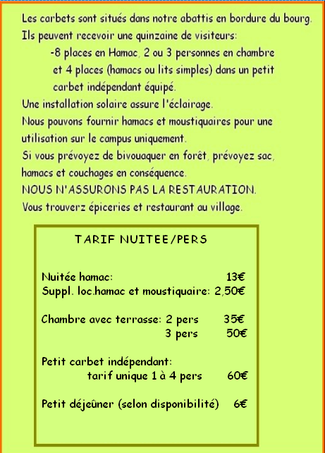 Hébergement en carbet hamacs